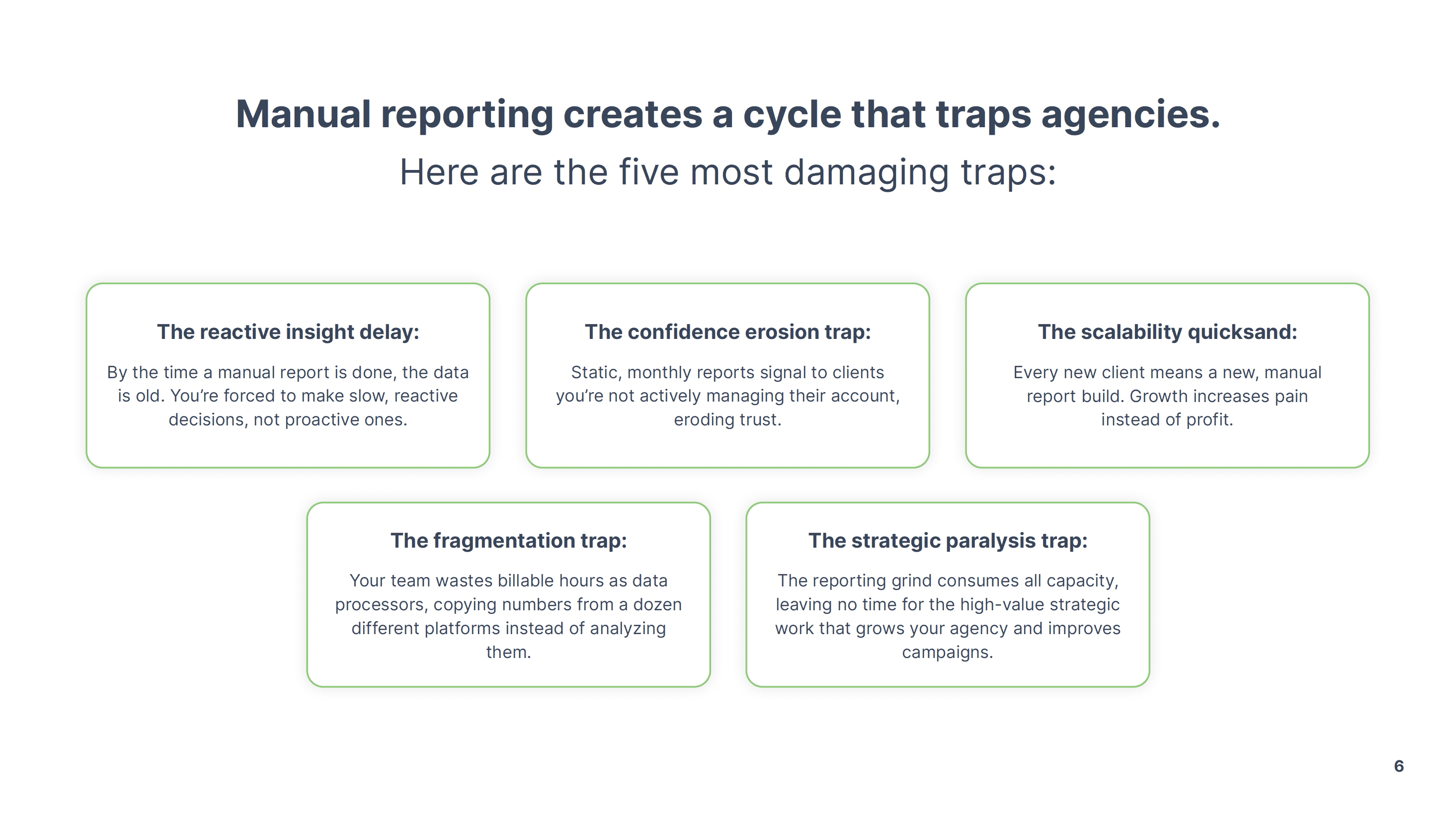 This guide shows you how to move from manual, scattered reporting to an automated, scalable framework that gives your team their time back and gives your clients better results.