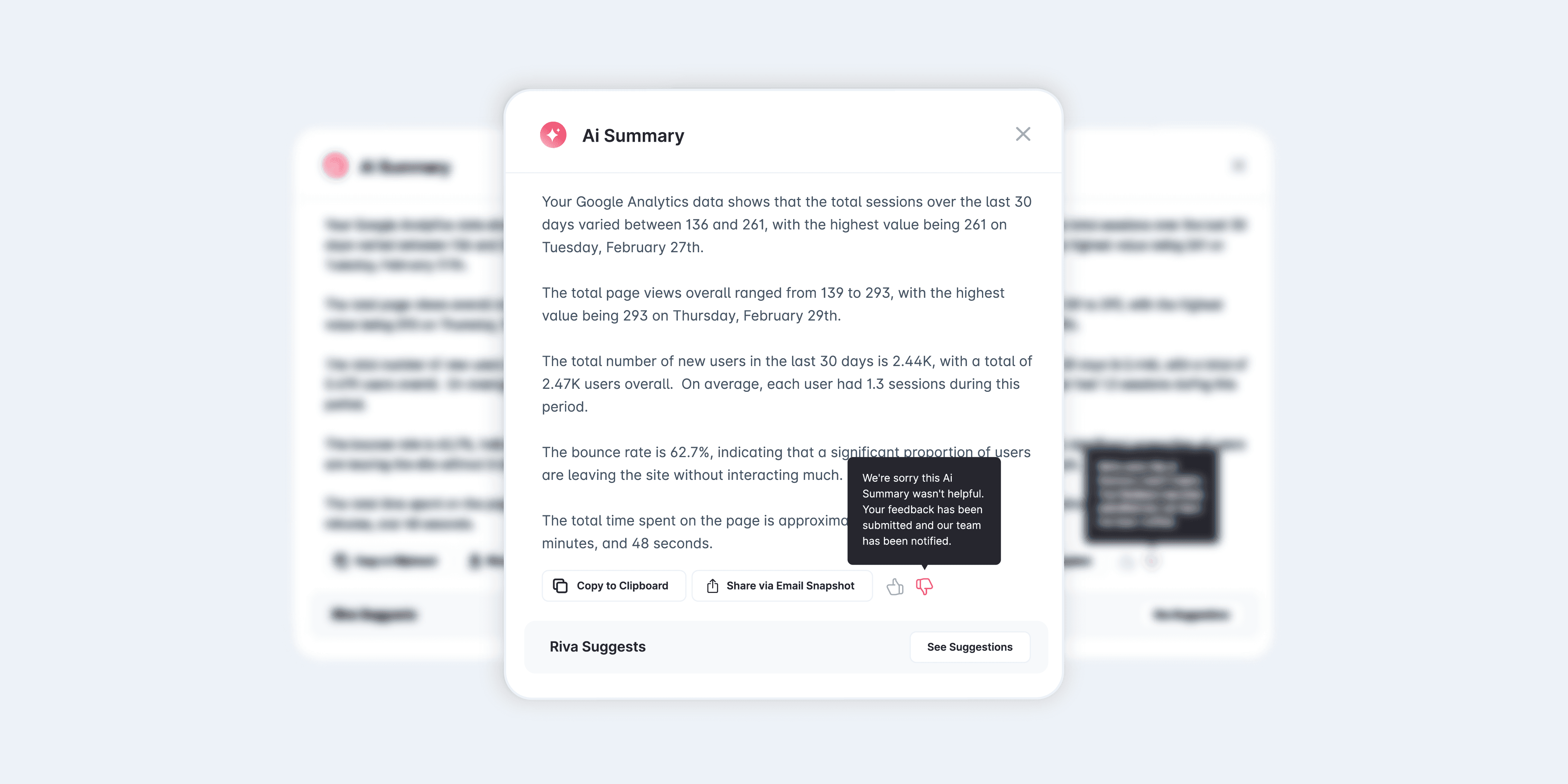 Our new Riva Suggests feature is now available in both AI-generated summary responses and the Riva Chatbot.