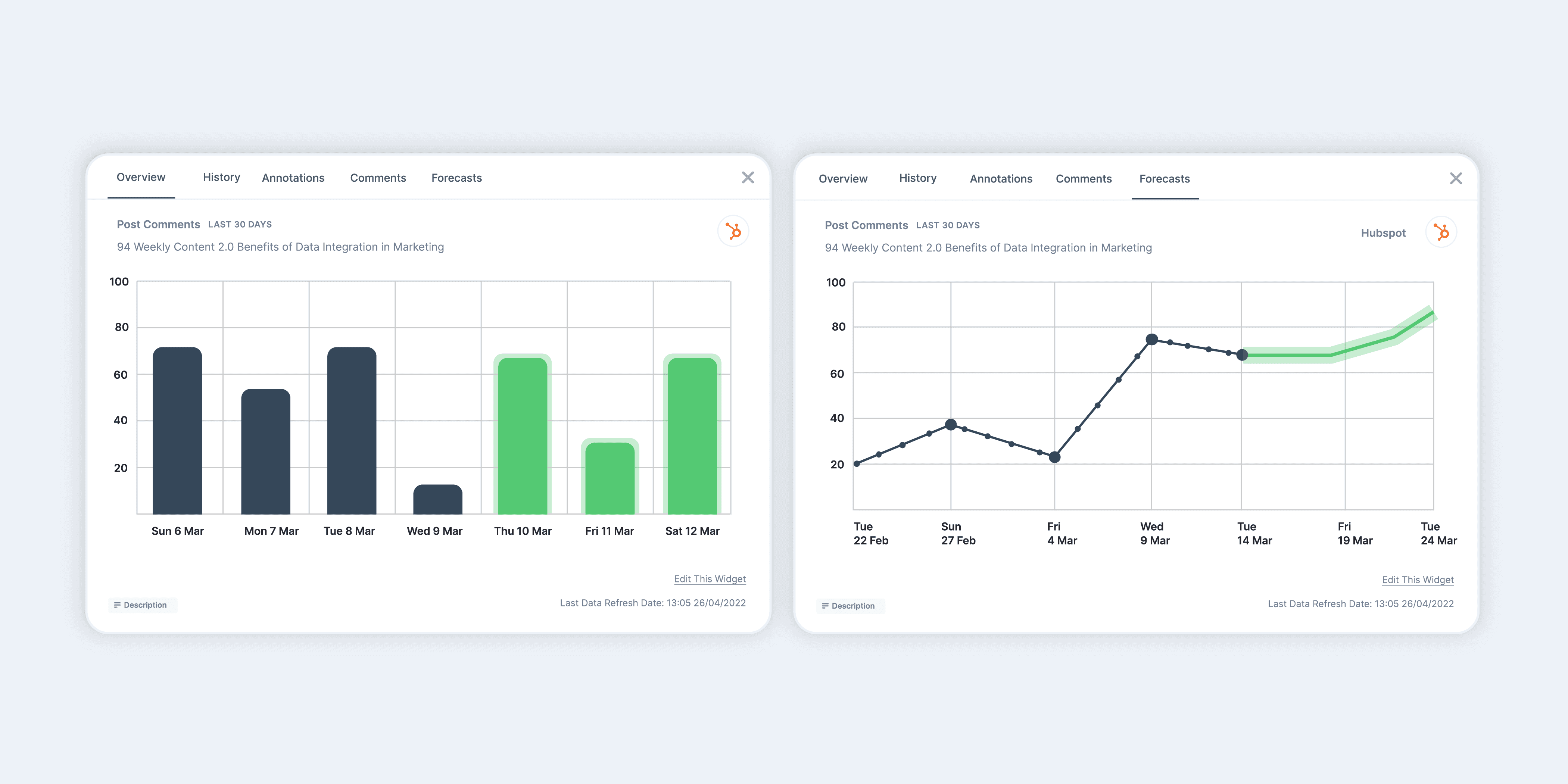 Hurree is helping you forecast future trends with our new Predictive Analytics AI feature, currently available on select widgets, including single numbers, line graphs and single bar charts across public and private dashboards. This tool analyzes historical data to predict the next seven days of insights, helping you identify patterns and make proactive decisions. While Predictive Analytics is currently limited to these widgets, we plan to expand its capabilities in the future, giving you even more ways to optimize your business strategies with AI-driven forecasts.