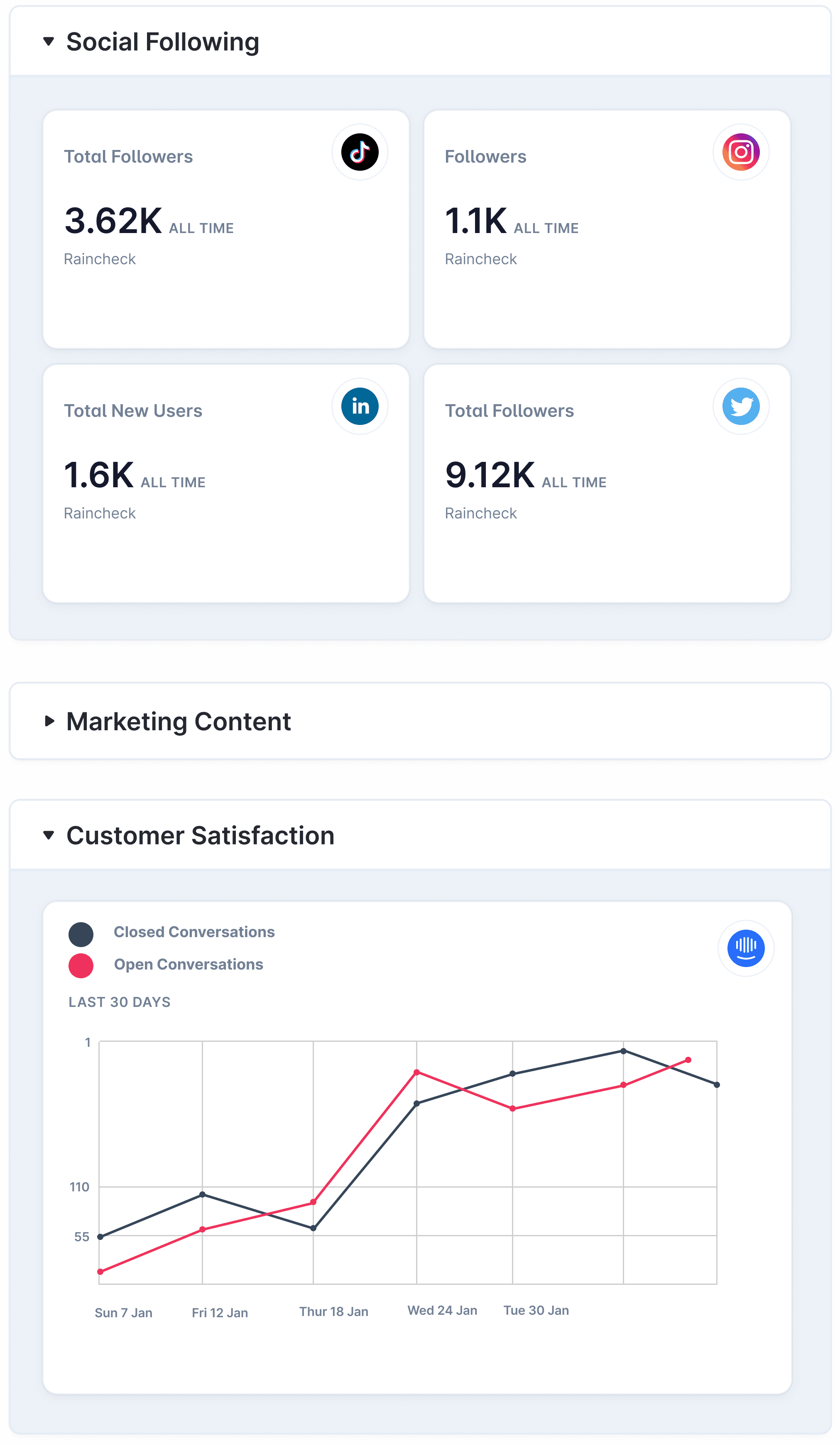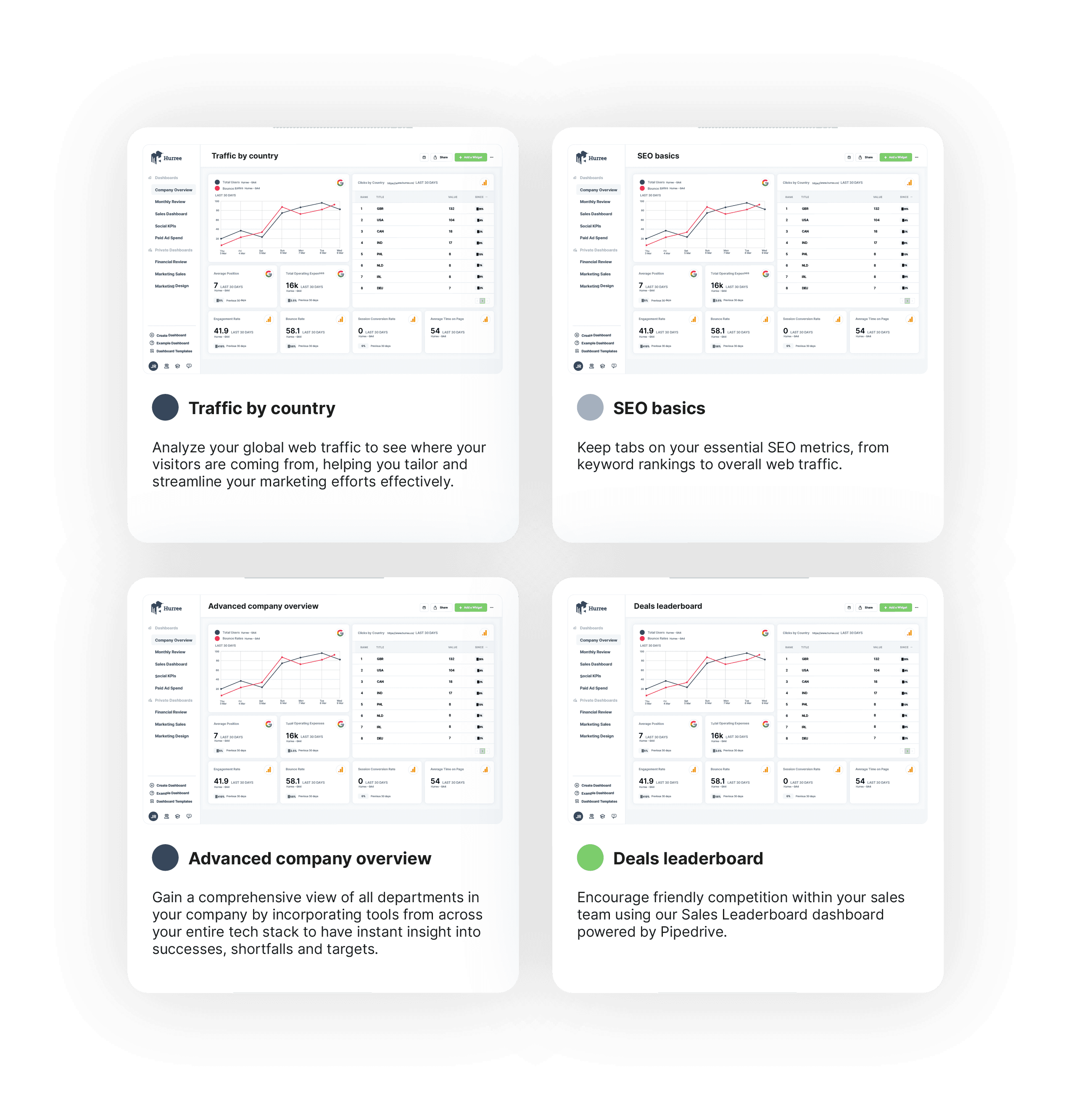 Section off key pieces of information for better organisation and a clean, clutter-free view of your metrics making quick analysis a breeze.