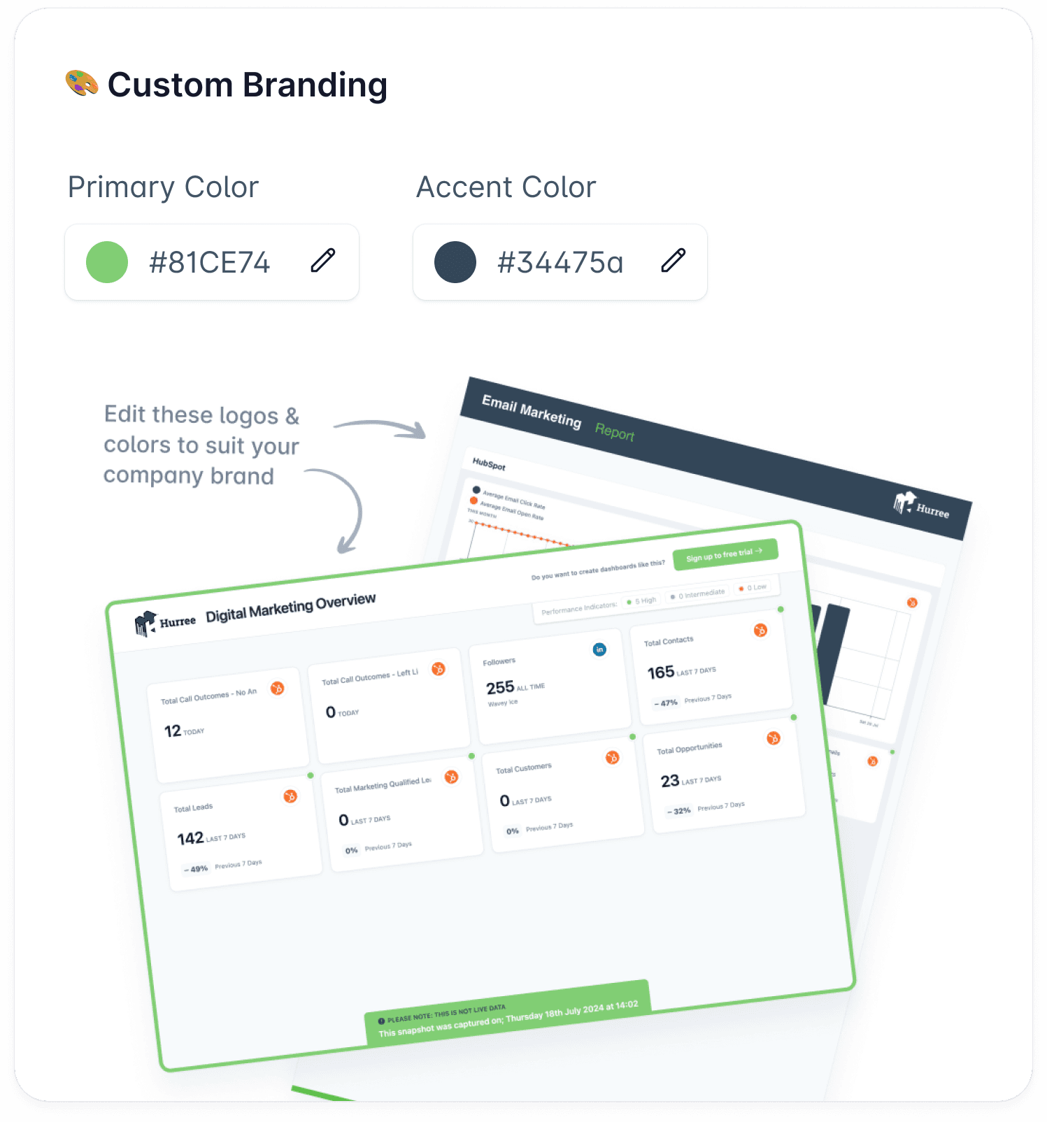 Customize your account so that your sharable reports align with your brand colours and logo.