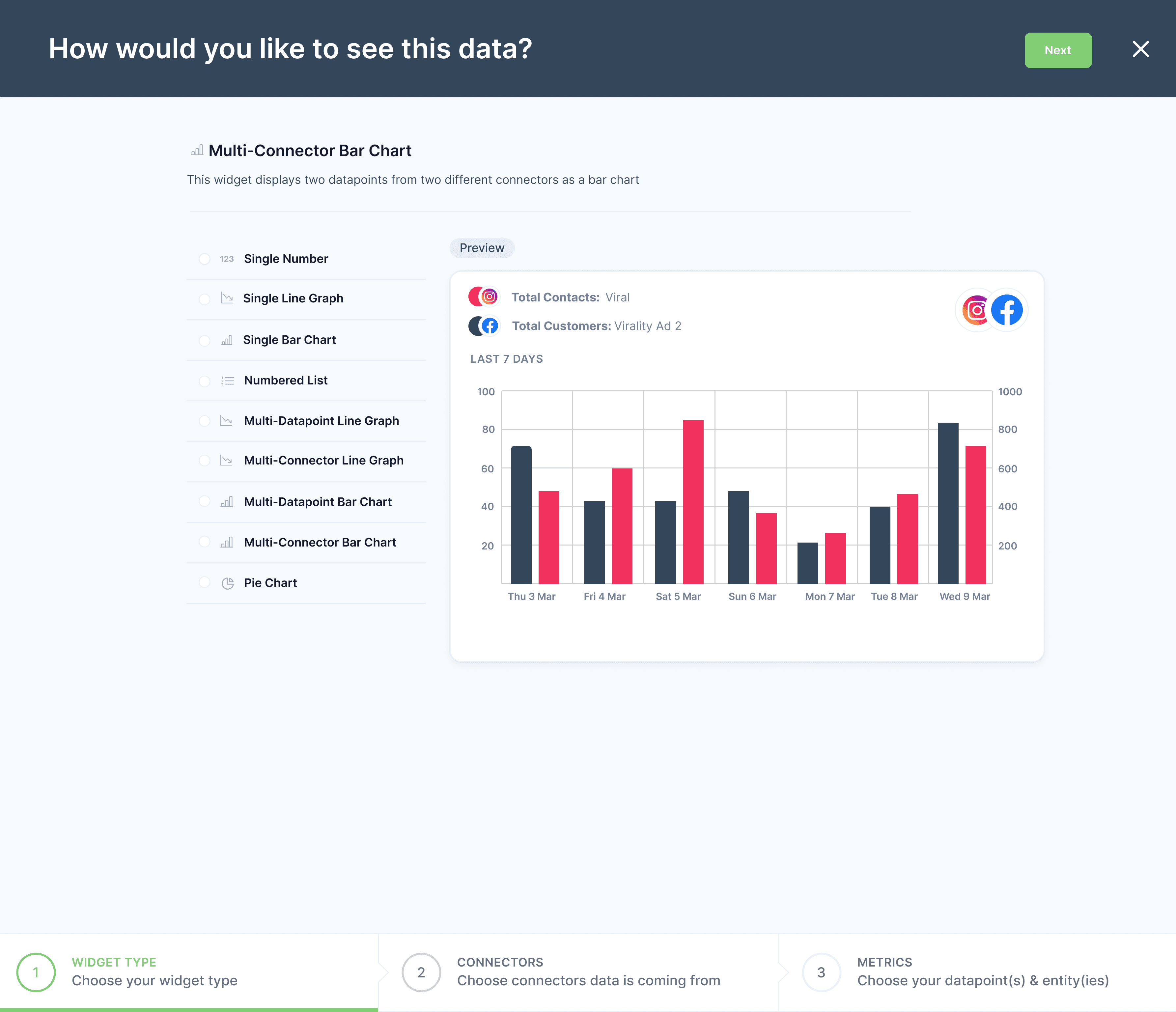 Simply choose your datapoint and then select how you want to view it- no data manipulation or formulas needed.